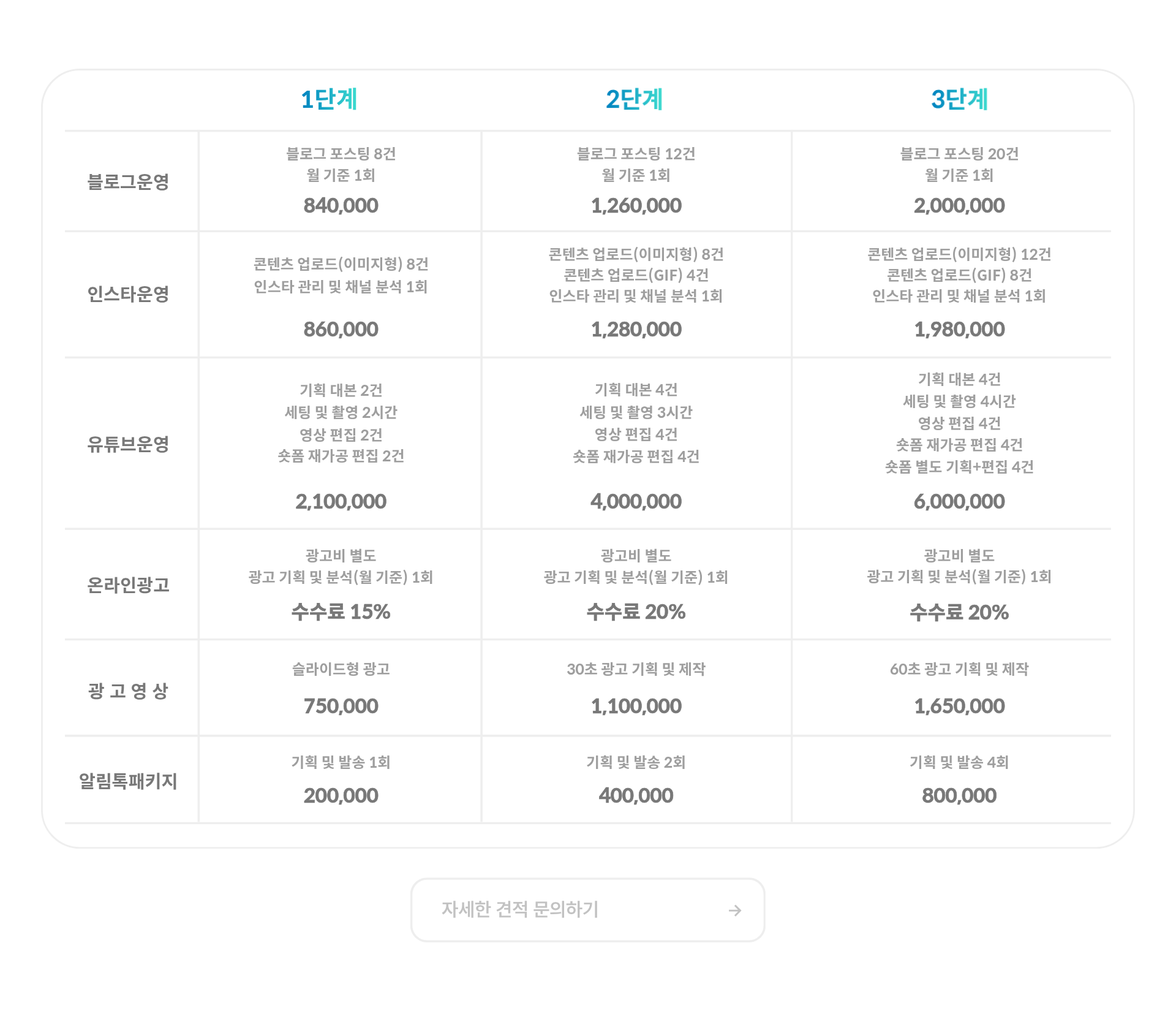 기업의 규모와 단계에 맞춘 효율적인 과금 체계로 불필요한 비용은 줄이고 꼭 필요한 마케팅만 제공합니다.